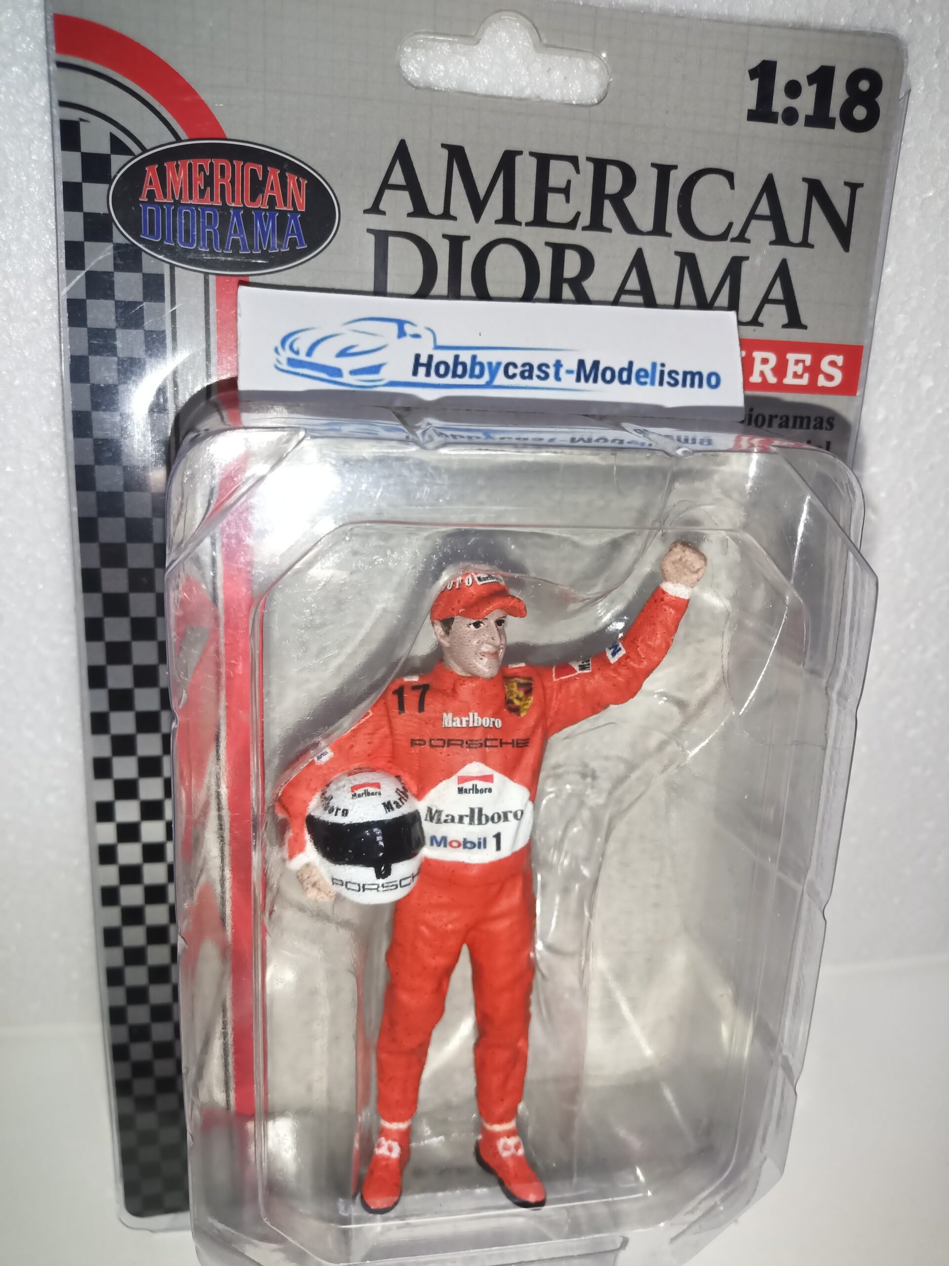 • MODELO:  REPLICA  FIGURA PILOTO DE PORSCHE #17 MARLBORO GT1 PINTADO A MANO AMERICAN DIORAMA , PIEZA UNICA