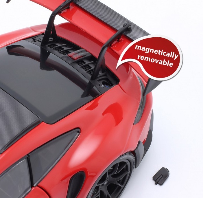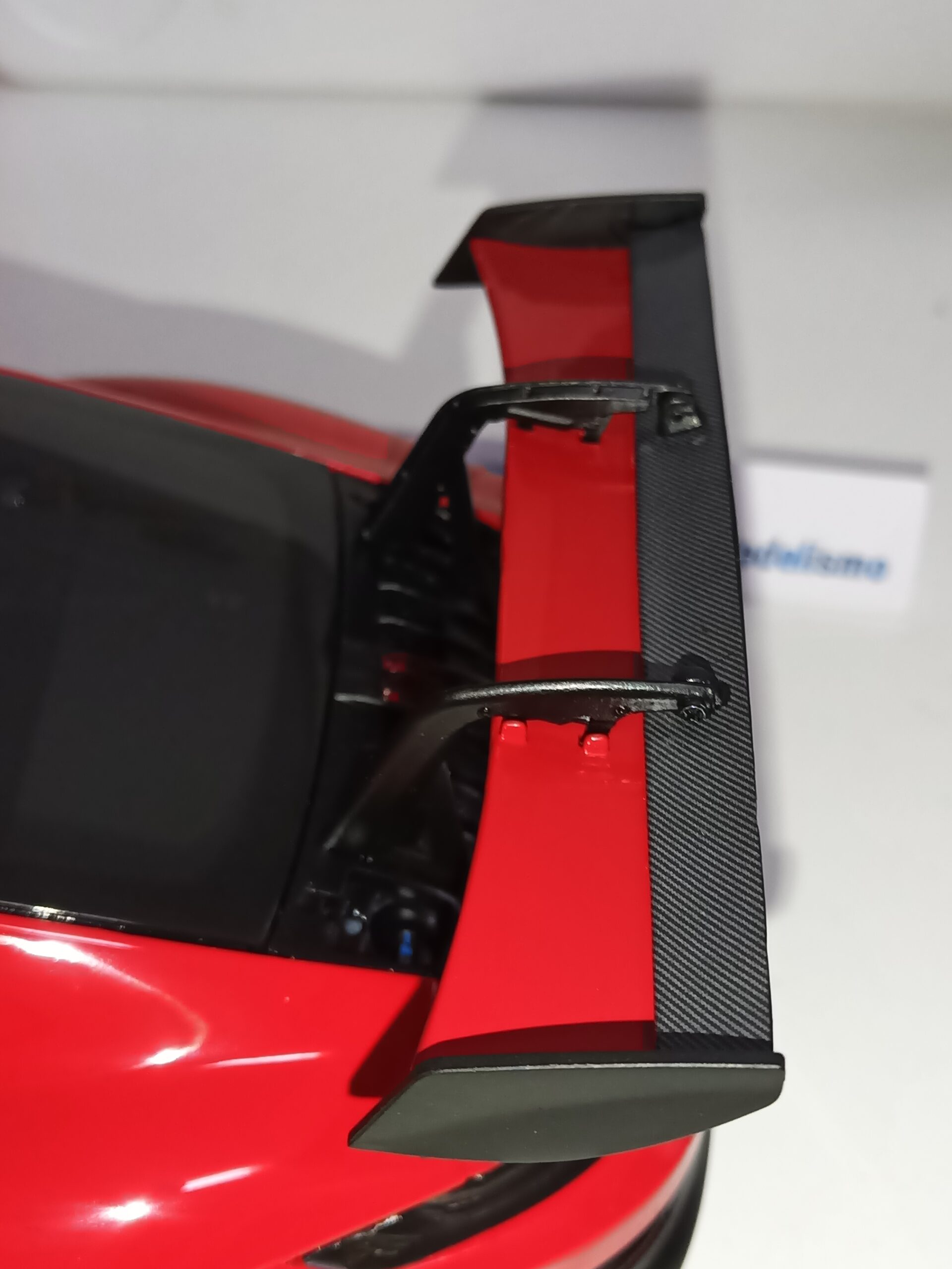 Escala: 1:18 Metal con aperturas de puertas y capot delantero y alerón movible y tapaderas motor desmontables .