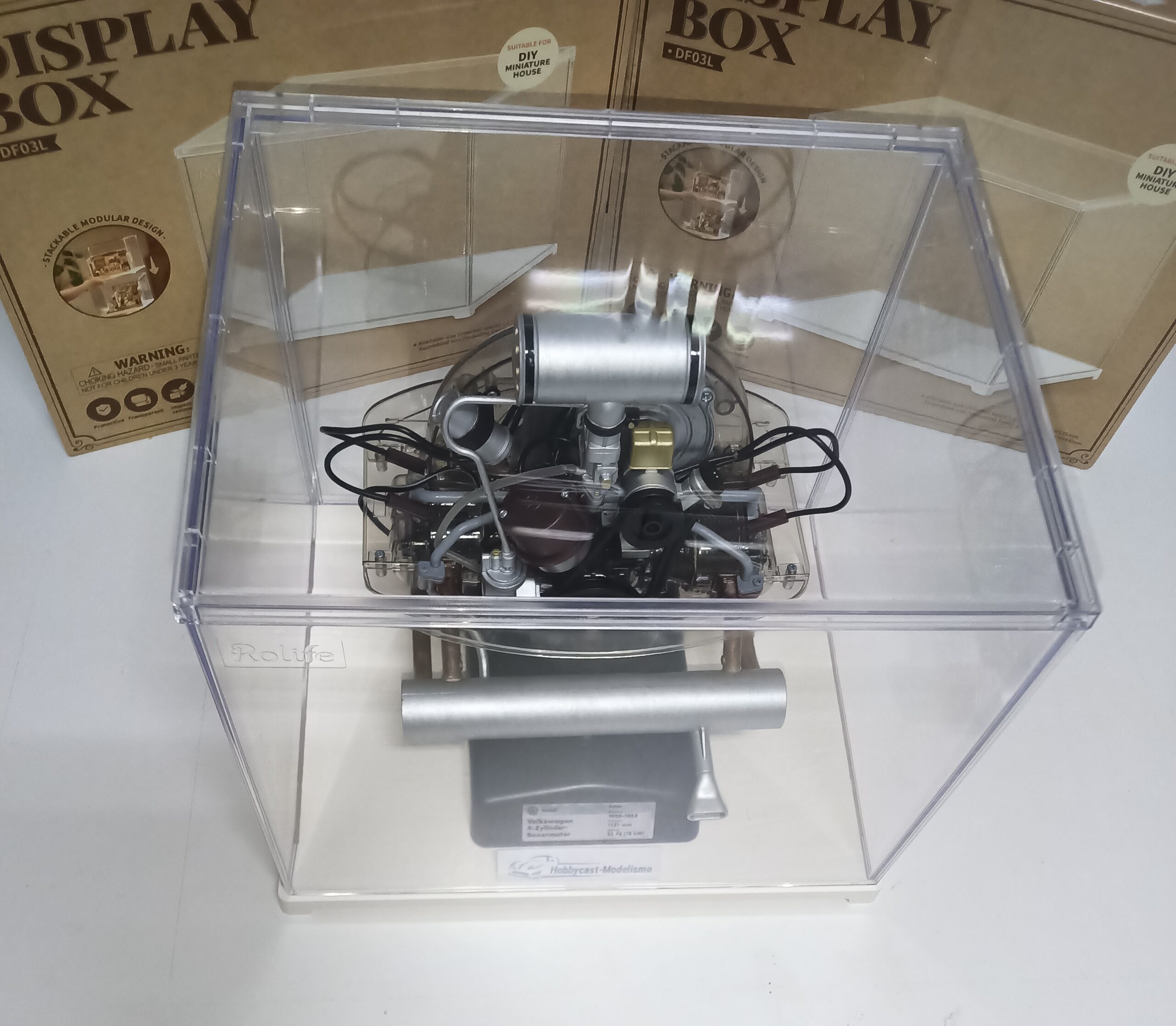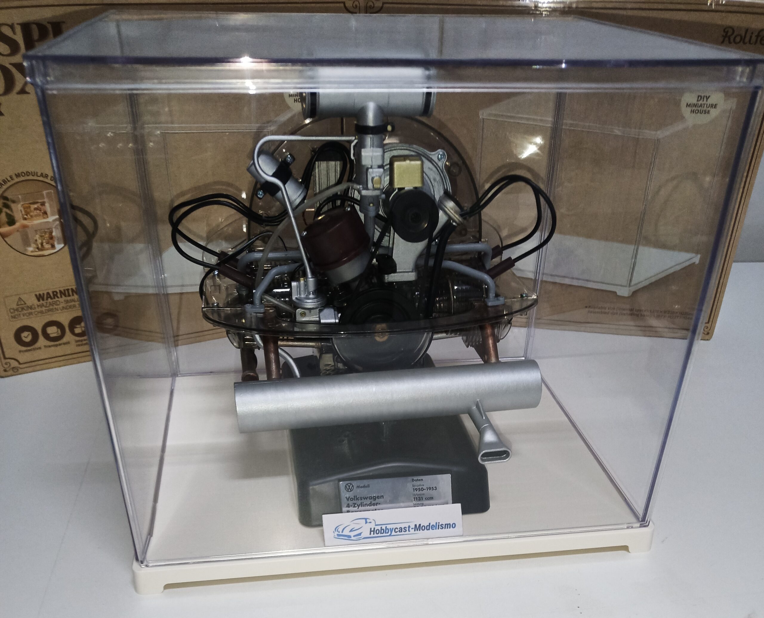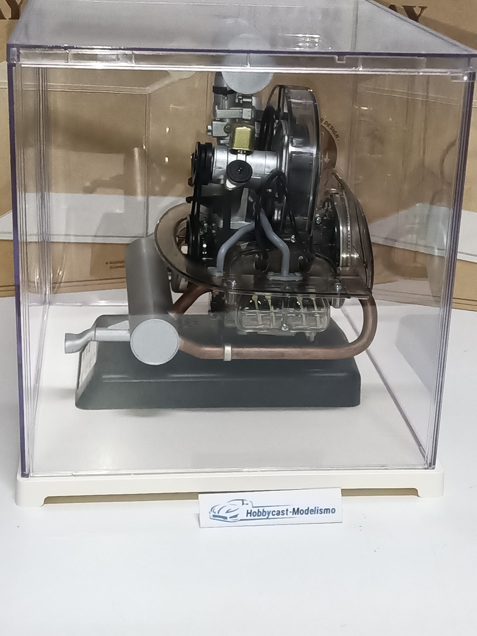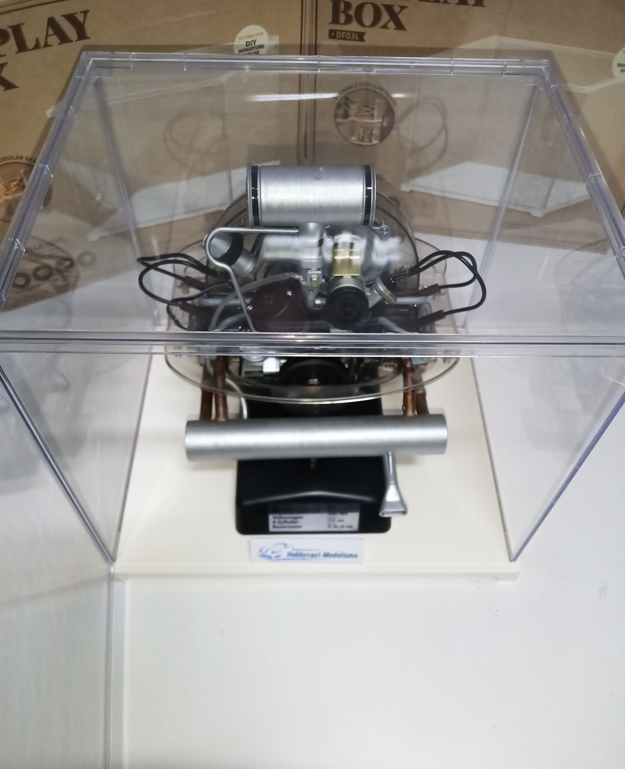 FOTO DE EJEMPLO COMO QUEDA UN MOTOR DE FRANZIS A ESCALA 1/4 DENTRO DE LA VITRINA , EL MOTOR NO ESTA INCLUIDO SOLO VITRINA EXPOSITORA VACIA ,